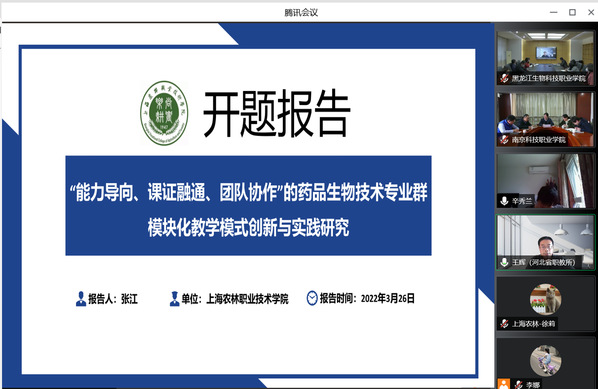 3月26日,“生物化工共同体”通过腾讯会议的方式召开了第二批国家级职业教育教师教学创新团队共同体建设推进会暨课题开题会,药品生物技术国家教学团队成员参加了本次开题会。会上,团队负责人张江副院长进行了“能力导向、课证融通、团队协作”的药品生物技术专业群模块化教学模式创新与实践研究”课题的开题汇报。团队成员认真听取了5位专家的意见和建议。经过本次开题,课题组将更加科学地制定研究方案,保质保量完成课题研究任务,提升药品生物技术国家教学团队成员科研能力。