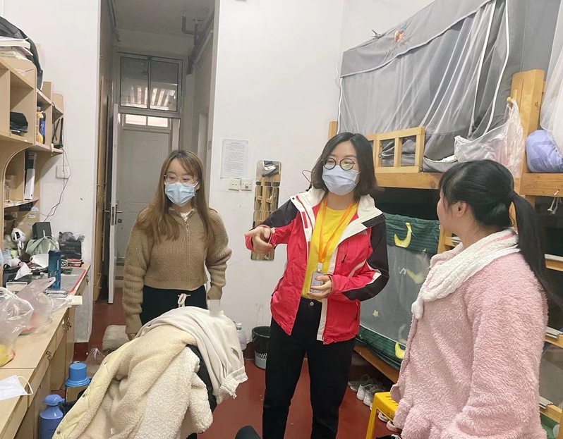 3月23日校园进入准封闭管理,系党总支书记蒋洁带领支部5名党员冲锋一线、“驻守”学校,全力保障我系在校师生的生活学习:组织学生有序进行核酸检测、深入学生宿舍楼走访谈心、举办学生宿舍爱国卫生活动、开展贫困生慰问,在特殊时期守护学生的平安健康,把党员的初心与使命落实到为学生服务的点滴之中。