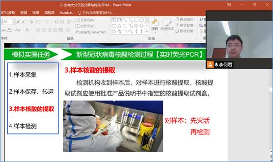 通过哔哩哔哩,向学生推送与疫情相关的生物学知识宣讲视频,包括什么是病毒,什么是抗原和抗体,什么是疫苗等,让学生充分了解这些生物学知识。懂科学、知原理才能远离谣言。徐莉和李何君2位老师分别就新冠病毒抗原检测技术原理、操作要点、结果判断等进行了详细的解读,很好的解答了师生关注的热点问题。目前视频访问量达1000余次,后期会将相关科普视频推广到学校层面,让更多人的人了解病毒知识和防范方法。