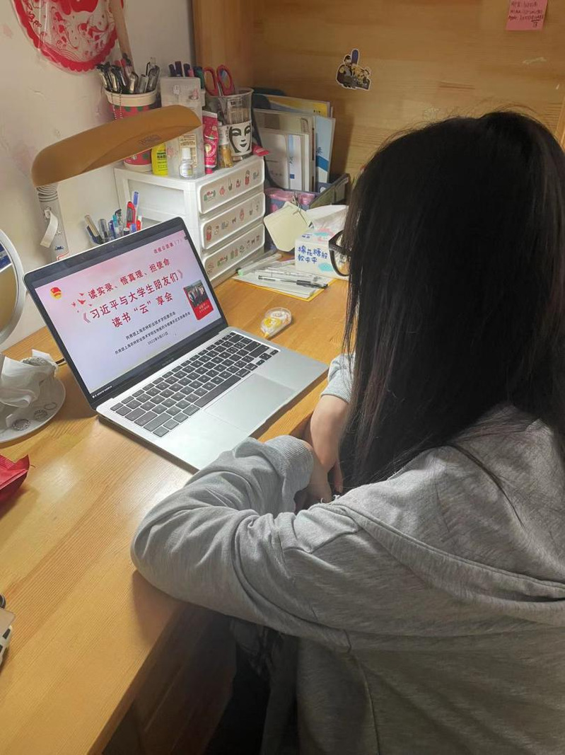 在自由交流环节中,质检高本贯211班龚心懿同学分享了自己的感想:在当前疫情防控背景下,提起“同舟共济”我深有体会,当我看到全国各地驰援上海的医疗用品、生活物资,理解了“同气连枝,共盼春来”的含义,作为一名共青团员,我积极加入到校园抗疫志愿者队伍中,与上海“同舟共济”。生物202班张舒芯同学告诉大家:我们生逢其时就要不懈奋斗。我们要树立远大理想,担负时代使命。