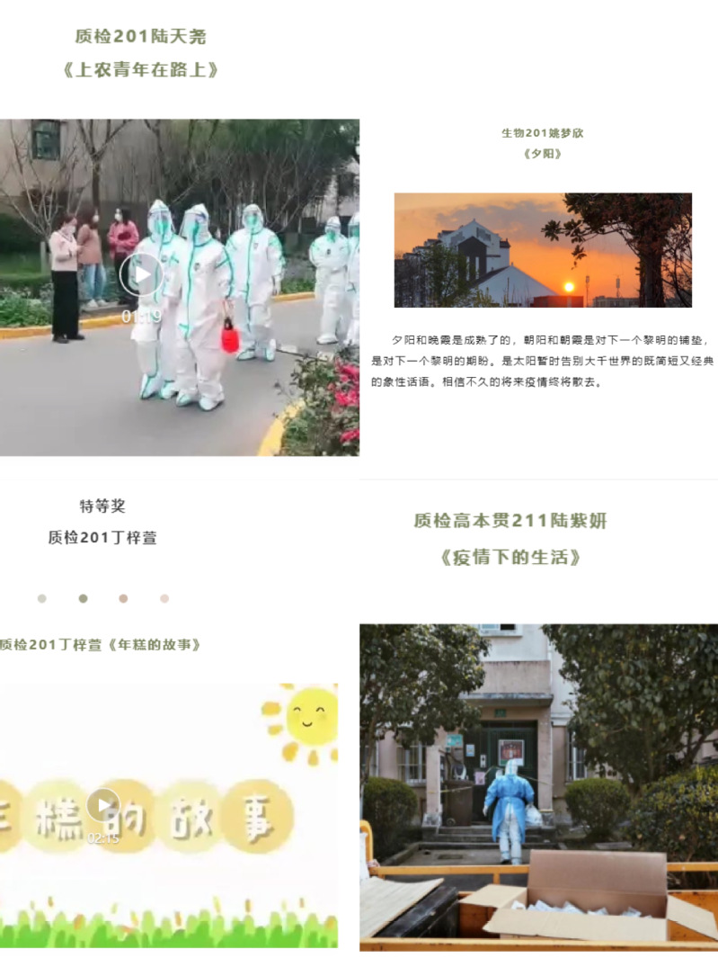 “同心守沪 疫散花开”系列线上活动,丰富了学生疫情期间的生活,为学生提供了展示才能的舞台,绽放青春风采,坚定抗疫信心。当前全市疫情防控进入攻坚战,生药系将继续发挥网络思政作用,凝聚青春力量,助力抗疫攻坚。