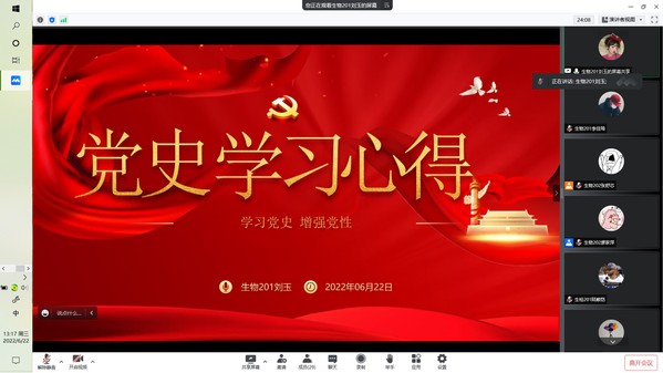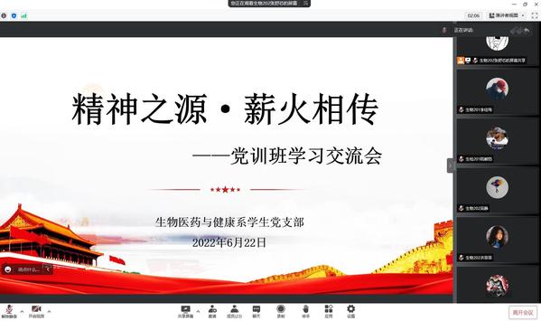 为进一步提高入党积极分子学习党史的培训效果,提高政治素养和工作能力,进一步发挥入党积极分子的先锋模范带头作用,6月22日下午,生药系学生党支部在线上举办“精神之源 薪火相传”的党训班学习交流会。会议由生物202班张舒芯主持,生药系党员老师苌建菊、高晓翠和入党积极分子28人参加。