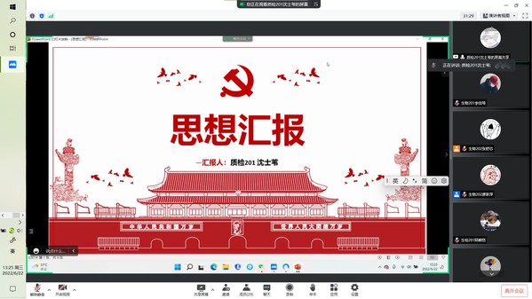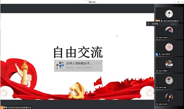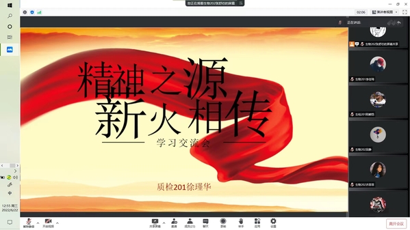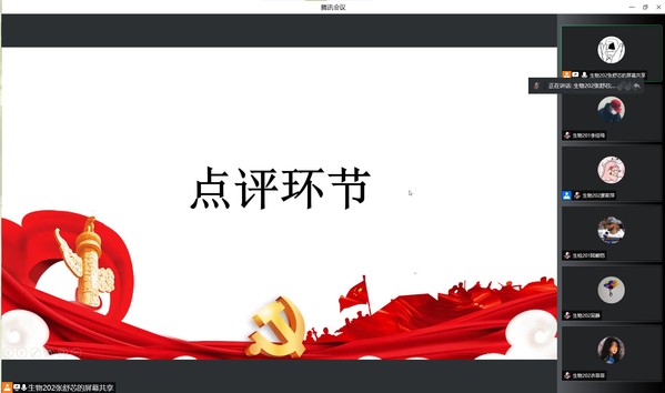 会上,生物202班廖家萍通过视频讲述张桂梅校长即使走不稳路,也要坚持送考,告诉我们要不怕苦,不怕累;不忘初心,砥砺前行。“为人民服务”,质检201班徐瑾华说:“我们通过学习党史,以史为鉴,就可以心中有信仰,脚下有力量”,我们要不断强化理论知识,提高自身能力,练就一身过硬本领。生物201班刘玉则是讲述了学习党史的内容以及其意义,告诉大家一代人有一代人的使命,要在学习和生活中不断提高自己。而质检201班沈士苇认为通过党课的学习,可以坚定我们的入党目标,向党靠拢,并通过此次疫情得到了要展开行动,克服自己的困难,帮助他人的感悟。