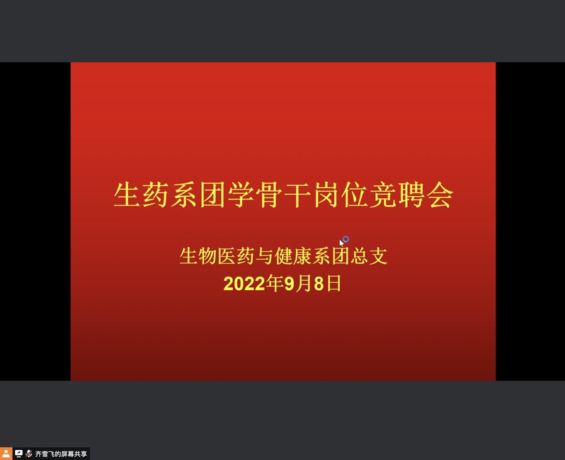 9月9日晚6点,生物医药与健康系团总支通过腾讯会议线上召开了2022年团学骨干岗位竞聘面试。20余位同学参加了此次竞聘。系团总支书记齐雪飞老师与20级主席团成员胡保坤、张舒芯、廖家萍同学担任本次竞聘面试评委工作。