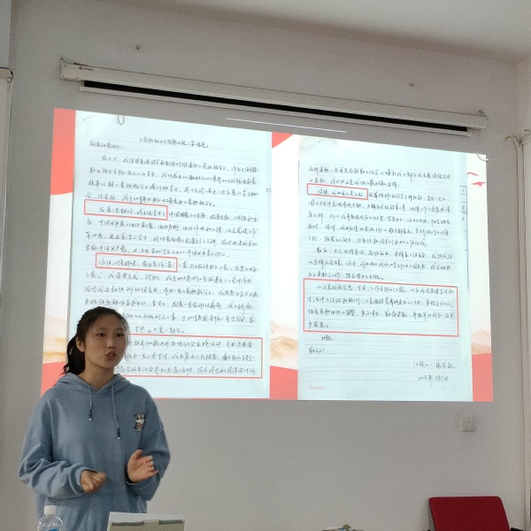 会上,廖佳萍从思想汇报的意义、格式、内容等方面进行了介绍并对优秀的思想汇报进行了展示分享。思想汇报是入党积极分子与党组织联系和交流的重要途径,便于党组织了解入党积极分子的成长状况,在格式方面应注意规范性,标题、称呼、正文、落款等细节必须做到严格规范;内容方面要注意时效性和自我反思,可以结合自身在校园、工作等方面的个人经历,以及自身对国内外近期热点时事的思考。同时推荐系部微信公众号的党建专栏,提醒同学查阅关于入党及和思想汇报撰写的指南和党员活动。