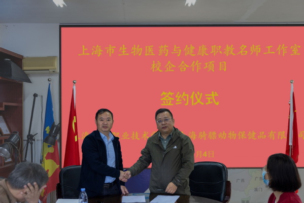 11月4日,生物医药与健康上海职业教育名师工作室与上海骑膘动物保健品有限公司签署横向技术服务协议。学院副院长张江、上海骑膘动物保健品有限公司总经理王天举以及相关团队教师共同出席会议。