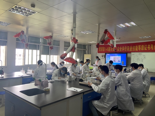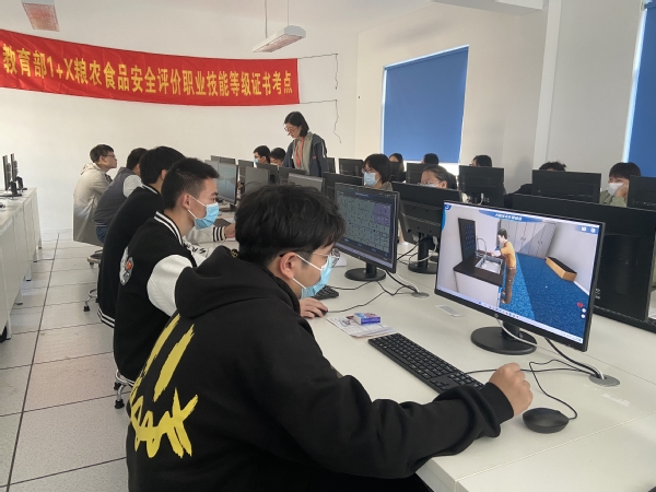 农产品加工与质量检测专业负责人陈晶、考评员王紫蓉作为主考员和巡考员,邀请食品科技学校方芳、王娟、张露娟、金辉,4位教师及本校专任教师作为考评员,圆满完成了考务工作。“1+X粮农食品安全评价”职业等级(中级)证书考核包括理论考核、虚拟仿真和实操考核三部分,理论考核和虚拟仿真以机考形式进行,实操考核包括饮料总酸度测定和菌落总数测定。