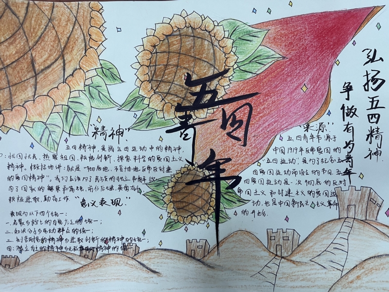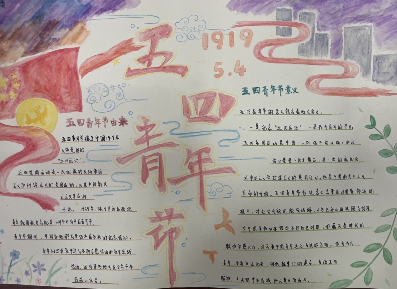 4月29日—5月4日,团员青年利用网络资源重温了习近平总书记对广大青年朋友的殷殷寄语,并通过绘画、手抄报等形式展现学习成果、弘扬红色基因、传承五四精神。