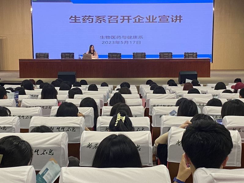 生药系于2023年5月17日下午,在综合楼205报告厅举办了企业宣讲会。本轮共有4家企业参与宣讲,生药系21级全体学生和19级贯通班279名学生共同参与。