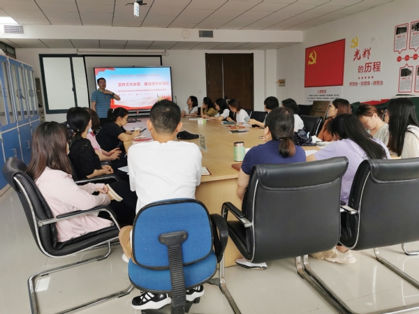 通过学习与交流,党员老师们纷纷表示文化自信,是更基础、更广泛、更深厚的自信。在五千多年文明发展中孕育的中华优秀传统文化,在党和人民伟大斗争中孕育的革命文化和社会主义先进文化,积淀着中华民族最深层的精神追求,代表着中华民族独特的精神标识。