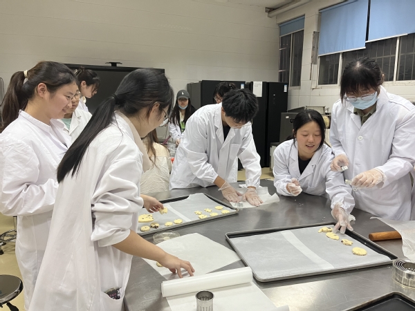 最后,所有师生移步至食品实验室体验我院特色课堂,动手参与蛋挞、司康的制作,了解食品安全与营养的相关知识。