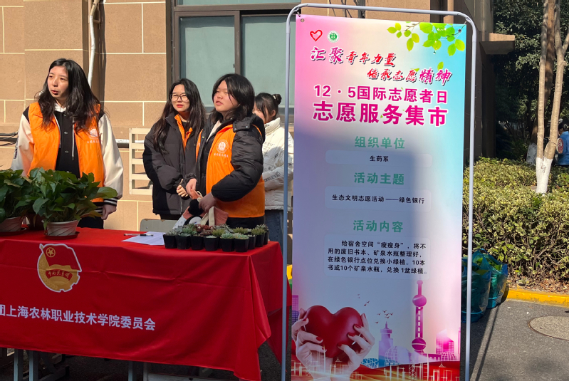 为倡导绿色健康生活方式,带动更多同学参与到爱护校园、维护环境的行动中来。生药系学生会志服部于12月5日在学生事务楼前广场开展“绿色银行”环保志愿服务活动。