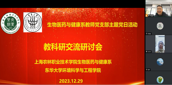 为了进一步促进党建与业务相融合,提高基层党组织引领力,12月29日,生药系教师党支部开展“党建+科研”主题党日活动,本次活动通过线上线下相结合的方式与东华大学环境科学与工程学院开展教科研交流。会议由生药系教师党支部书记李何君主持,东华大学环境工程系主任黄满红教授、东华大学环境工程系教师、生药系全体党员教师参加。