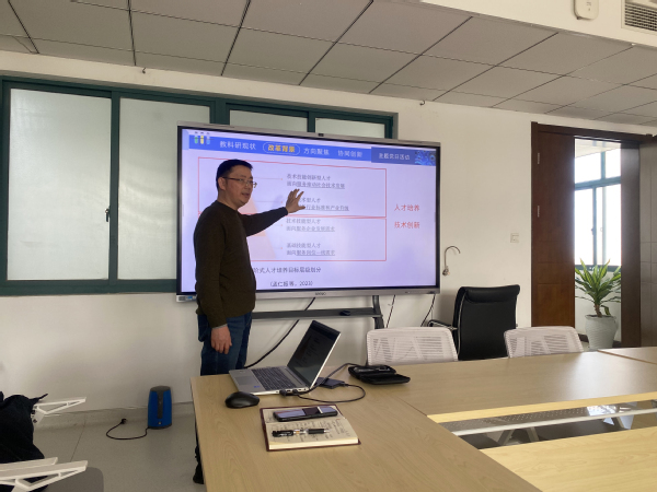 活动中,李何君书记从教科研现况、改革背景、方向聚焦和协同创新四个方面对系部的教科研情况进行了系统分析,支部党员进行了充分讨论和研讨。经过讨论大家认为:目前系部的教研主要集中在课程思政、产教融合、现代学徒制、数字化资源建设、虚拟仿真、课堂革命等内容,科研分布在生物、环境、食品和职业规划等内容。针对在当前“双高建设”和深化新阶段职业教育改革“一体、两翼、五重点”背景下系部的发展方向进行了深入探讨,并就三教改革、课程思政改革和模块化教学改革等研究进行了分析。最后,活动就基于“市域产教联合体”推进过程中的“教育链、人才链、 产业链、创新链”融合发展进行研讨。
