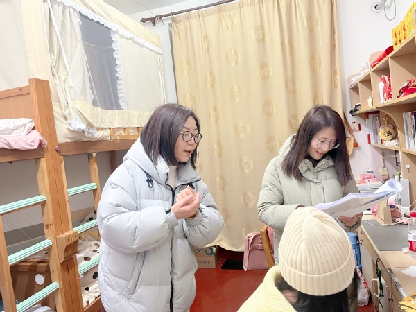 走访过程中,老师们与学生亲切交谈,细心询问学生寒假生活情况,对学生开学后的需求和困惑进行答复,提醒学生做好规划,安排好新学期学习和生活,同时向同学强调了寝室用电安全、人身安全、财产安全等。