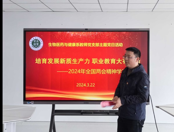 3月22日,生药系教师党支部在综合楼905召开“培育发展新质生产力 职业教育大有可为——学习2024年全国两会精神”主题党日活动,全体教师党员参加。会议由生药系教师党支部书记李何君主持。