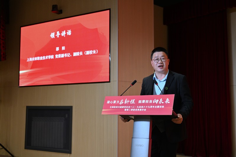 12月9日,由学工部、团委指导,生药系主办的“凝心聚力启新程 挺膺担当向未来”上海农林职业技术学院生物医药与健康系纪念一二·九运动八十九周年主题活动暨第二课堂成果展示会在205报告厅举行,党委副书记、副院长邵阳出席活动并讲话,学工部、团委、各系党总支、团总支和师生代表等300余人参加活动。同时,上海青东戒毒所、岳阳街道团工委、新浜镇鲁星村、松江区民乐学校、松江区实验小学等代表,上海市非物质文化遗产保护项目《新浜山歌》代表性传承人以及部分企业代表、校友代表等作为校外嘉宾受邀参加活动。