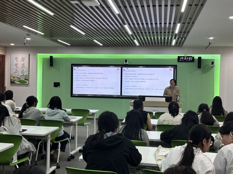 活动伊始,金蓓蓓通过生动的案例解析压力形成机制,从生理反应到心理应对层层剖析。“适度的压力能够激励我们突破自我,过度的压力则可能对身心健康造成不良影响。”她以“压力阈值”模型直观展示压力管理的平衡艺术,强调“觉察情绪是破局第一步”。针对特殊群体学生,金老师特别指出:“资源有限不等于发展受限,抗压能力的培养本身就是重要的人生资本。”