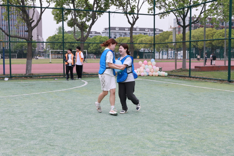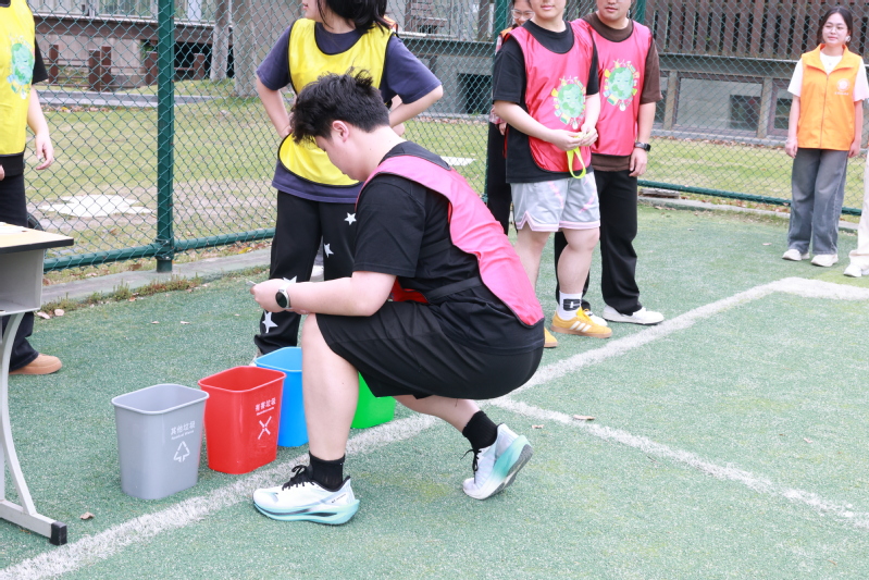 本次运动会的比赛项目设计新颖有趣,包括趣味接力赛。趣味接力赛设置了四个关卡,分别是垃圾卡片分类、背对背夹气球、三人四足50米跑和团队拼图。每队成员需依次完成这四个关卡,用时最短的队伍将获胜。这样的设计不仅考验了同学们的速度和技巧,更考验了团队协作和默契度。