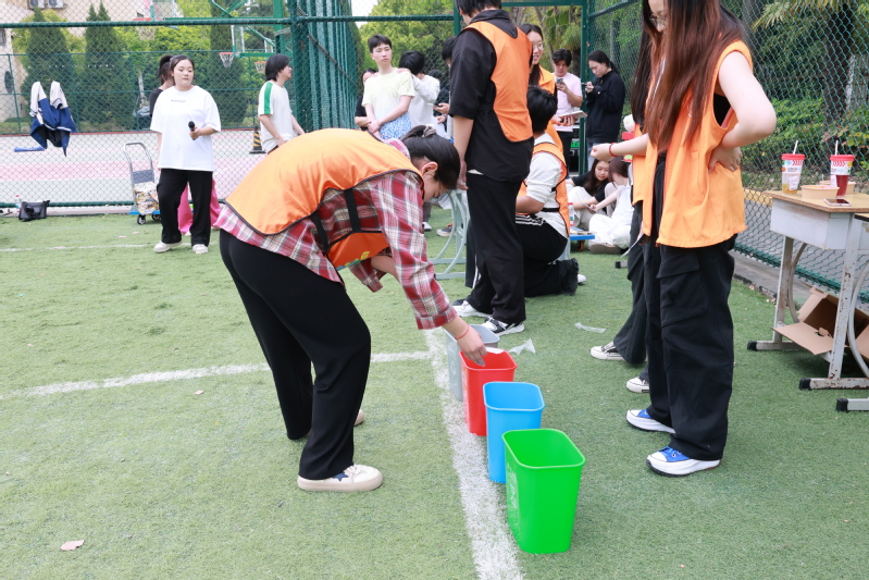 比赛过程中,各代表队展现了出色的团队精神和竞技水平。垃圾卡片分类关卡中,同学们迅速而准确地完成了分类任务;背对背夹气球关卡中,大家默契配合,稳步前行;三人四足50米跑关卡中,队员们齐心协力,奋勇争先;团队拼图关卡中,最后一人冷静沉着,迅速完成了拼图任务。
