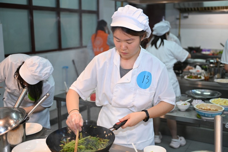 在现场,记者随机采访了几位参赛学生,他们的话语中满是对劳动的深刻理解。“以前觉得做饭就是填饱肚子,现在才知道,每一道菜都是创作者的心血。”来自动物科学技术系的许蕾表示,“从备料到装盘,每个环节都需要耐心和专注,这和学习一样,容不得半点马虎。”刚完成作品的李静则分享道:“这次比赛让我明白,劳动不仅能创造美味,更能塑造品格。在反复练习红烧肉的过程中,我学会了坚持和团队协作,这些收获比奖杯更珍贵。”