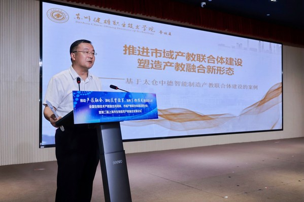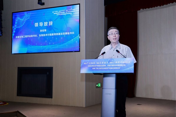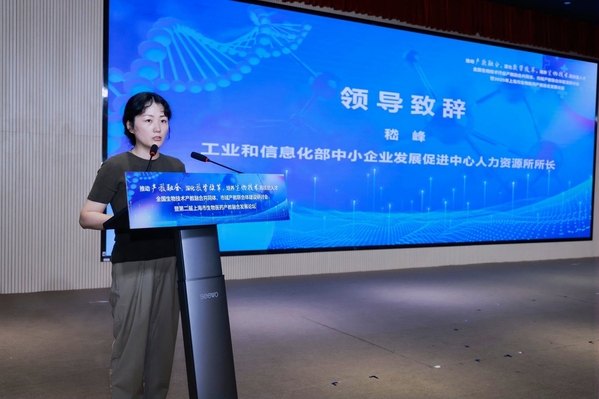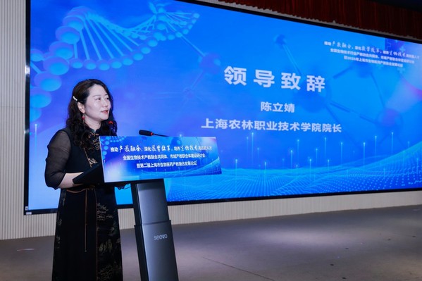 上海农林职业技术学院院长陈立婧,中国生物工程学会秘书长、全国生物技术行指委常务副主任兼秘书长张宏翔,工业和信息化部中小企业发展促进中心人力资源所所长嵇峰,上海临港新片区管理委员会发改处副处长庄青松与上海市教育委员会职教处副处长马骏分别致辞。陈立婧提到,学院持续探索产教融合新模式,通过与企业合作培养人才,为生物医药产业发展提供有力支撑;张宏翔表示学会愿整合资源,助力产教融合,推动生物医药领域的技术创新与成果转化;嵇峰指出,应重视中小企业在生物医药产业中的作用,借助产教融合助力其发展;庄青松表示,临港新片区在政策、资源等方面将大力支持生物医药产教融合项目,打造产业发展新高地。马骏强调,市教委将加强政策引导,鼓励各方深度参与,提升生物医药产教融合的质量与成效。