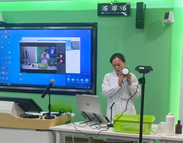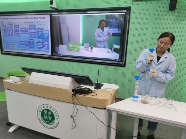 培训过程中,教学团队采用“理论讲解 + 可视化演示 + 互动实操” 三维模式,确保技术传递的专业性与实用性:通过高清视频系统直观呈现污水处理核心技术与全工艺流程,帮助学员建立系统认知;以现场演示形式解析活性污泥性能检测、微生物镜检等关键操作,同步讲解生化处理单元的日常运行管理要点;借助虚拟仿真技术模拟污水处理厂常见风险场景,清晰标注安全隐患排查重点;更通过 “情景再现” 方式演示实验室试剂泄漏、化学试剂沾染皮肤、初期火灾等突发事件的标准化应急处置流程,强化学员安全操作意识。此外,团队还围绕学员提出的 “活性污泥异常状态判定”“活性污泥培养驯化技术难点” 等实际问题展开深度互动,逐一答疑解惑,切实解决当地教学与实践中的痛点。