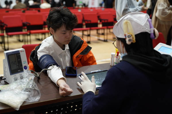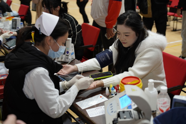 在学生群体中,88名学子组成的献血队伍同样展现出青春的担当与热忱,其中既有入党积极分子、团学骨干,也有刚踏入大学校园的大一新生。大家有序排队,依次进行登记、体检、采血等流程,脸上洋溢着自豪的笑容,积极营造出“我献血、我光荣、我健康”的浓厚氛围。环境251班夏添表示:“这是我第一次献血,虽然有点紧张,但想到自己的血液能帮助到别人,就觉得特别有意义,以后我还会继续参与这样的活动。”院学生会主席团成员、生物242班倪晨阳则说:“作为学生骨干,我们更应该带头参与公益活动,用实际行动影响身边人,让更多人加入到奉献爱心的队伍中来。”
