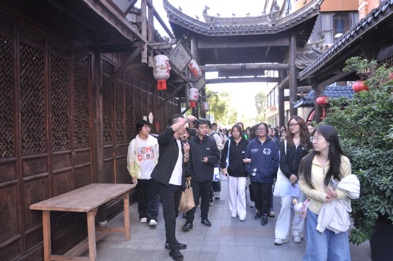 爱企谷健康生态小镇作为“数字+健康”产业融合标杆,以“康养+文旅+田园”创新模式构建全生命周期健康服务体系,集聚了干细胞医疗、中医药大健康等多个细分领域的创新企业,为学子们提供了立体化的学习场景。在小镇讲解员引导下,同学们先后走访了健康服务中心、中医药创新展厅及银发创业孵化平台,近距离了解AI个性化健康档案搭建、健康产品直播推广等创新实践,详细询问了传统生物医药资源与现代健康产业的融合路径、康养产品研发流程等关键问题。