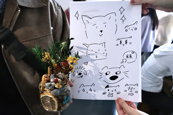 活动现场精心设置绘画抒怀、香薰手作两大主题区域,氛围温馨而治愈。绘画环节中,在主持人的引导下,同学们手持画笔与色彩工具,以无主题、无评判的自由创作方式,将近期的情绪通过线条、色彩与图案尽情表达。创作完成后,2 名同学主动分享了画作背后的故事,主持人通过正向回应与引导,帮助在场成员更好地觉察自身情绪,学会自我关怀与同辈共情。