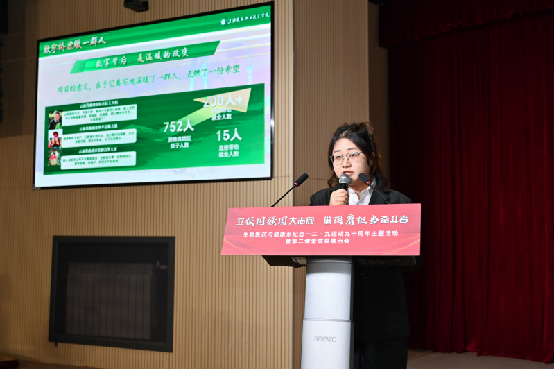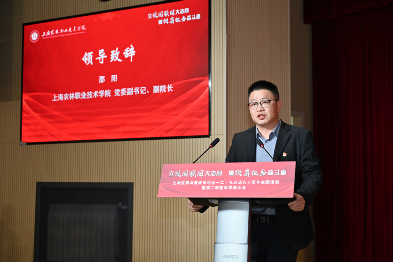 12月9日,由学院学工部、团委指导,生物医药与健康系主办的“立报国强国大志向 做挺膺担当奋斗者”纪念一二・九运动九十周年主题活动暨第二课堂成果展示会在综合楼205报告厅举行。学院党委副书记、副院长邵阳出席活动并致辞,学工部、宣传部、关工委、团委、各系学生工作负责人、生药系党政班子成员以及兄弟院校嘉宾、共建单位代表、校友代表、师生代表等300余人齐聚一堂,共同回望峥嵘历史、展示育人成果、凝聚奋进力量。