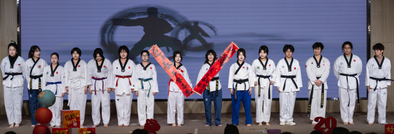 “青春序曲·心随乐动”篇章率先点燃全场氛围,各类青春洋溢的表演轮番登场。师生携手演绎民族舞蹈,歌曲串烧以灵动嗓音串联起不同旋律,动感舞蹈《so crazy》以劲爆节奏与利落动作,将青春的无畏张扬展现得淋漓尽致,跆舞《霍元甲》则融合刚劲力量与灵动韵律。台下荧光与掌声交织成欢乐的海洋。