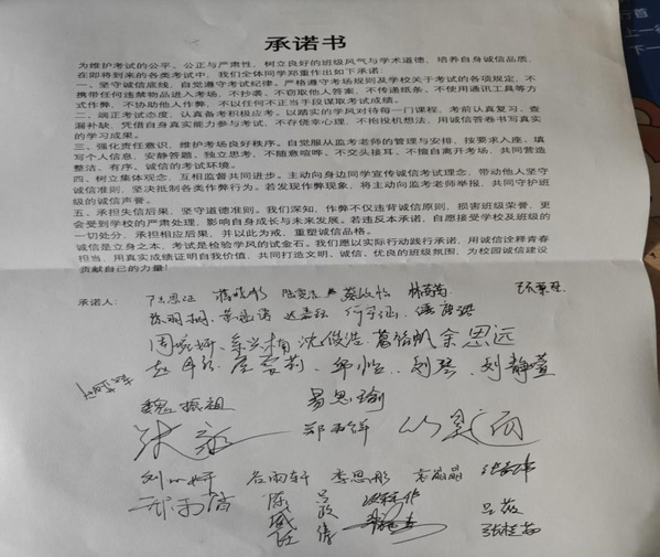 系部高度重视诚信教育,通过“线上+线下”双线推进,构建常态化育人链条。各班级组织召开“诚信筑基·学风护航”等主题班会,结合典型案例解读校纪校规,引导学生树立“诚信为荣、失信为耻”的价值观。全体学生签订《诚信考试承诺书》,并通过诚信故事分享、主题征文、黑板报等形式,让诚信文化浸润日常。此外,诚信教育延伸至实验实训、课程作业与毕业设计环节,倡导“诚信科研”“诚信实验”,筑牢学生职业发展的道德基石。