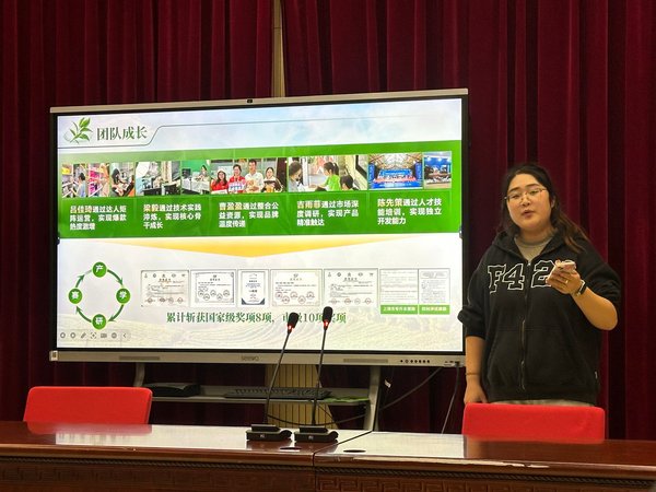 培训现场,去年荣获中国国际大学生创新大赛上海市职教赛道金奖的项目成员受邀进行示范路演。他们以获奖项目为蓝本,还原了从选题萌芽、团队磨合、技术攻关到终审答辩的全过程,并围绕时间管理、文献调研、答辩心态等备赛痛点分享“实战锦囊”。在场同学踊跃提问,现场气氛热烈。这种“身边人讲身边事”的朋辈教育模式,有效激发了同学们的参赛热情与创新自信。
