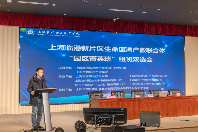 为深化产教融合、精准对接生物医药产业人才需求,3月25日,上海临港新片区生命蓝湾产教联合体“园区菁英班”组班双选会(第一场)在综合楼 205 顺利举办。本次活动由上海临港新片区生命蓝湾产教联合体、上海生物医药产业学院主办,上海农林职业技术学院联合和元生物、奥浦迈生物、臻格生物、迈科康生物四家行业龙头企业共同承办,共有164名学生参与本次双选。